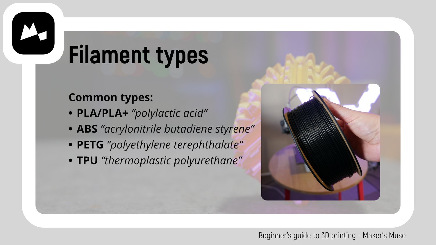 Video course taught by Angus Deveson of Maker's Muse, with over 10 years experience in the 3D printing space.